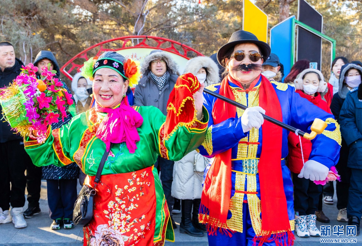 2月3日,民间艺人在呼和浩特新春文化庙会上表演秧歌。新华网发(丁根厚 摄)