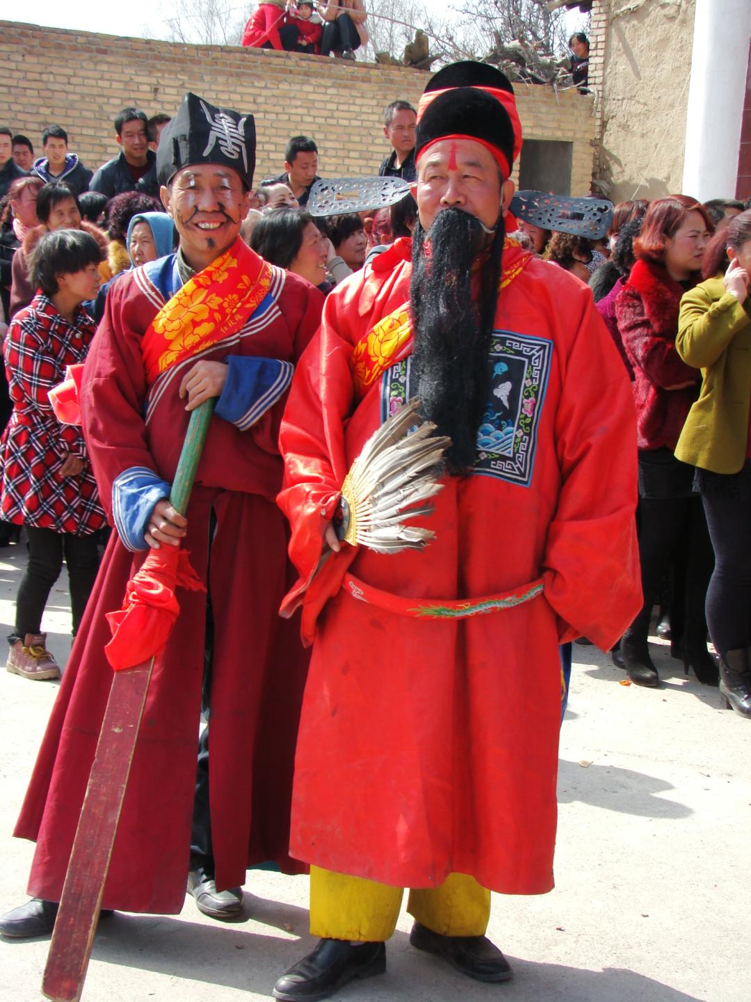 春官是行走在社火队伍最前面的人物,他是朝廷派遣下来负责民间春耕的命官,他头带乌纱帽,身着官服,口蓄长冉,身材魁武,面目和善,手持扫帚,轻轻摇摆,口中念念有词,两侧有衙役持肃静、回避的牌子,每到表演地、单位,必将他请到上座,他用扫帚轻扫空中,寓意扫除灾害、瘟疫,带给吉祥与幸福。