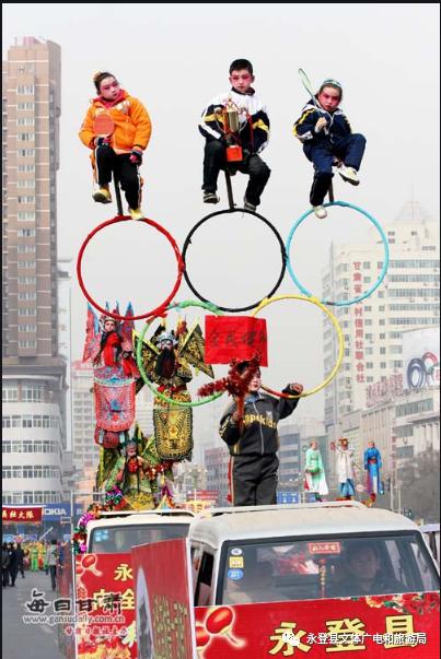 永登社火解放前由群众自发表演,因生活困难,服装、道具简单,表演多为民间祭祀为主,各社火队在周边村进行表演,村上接社火,给予适当费用,多以粮食为主,还安排表演吃饭。