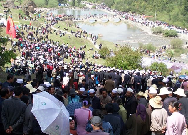 七里寺峡位于青海民和回族土族自治县,在这里举行的花儿会至少已有百年历史。每年农历六月初六,八方群众盛装举伞结伴而来,六七万人云集峡谷,通宵达旦对唱花儿。
