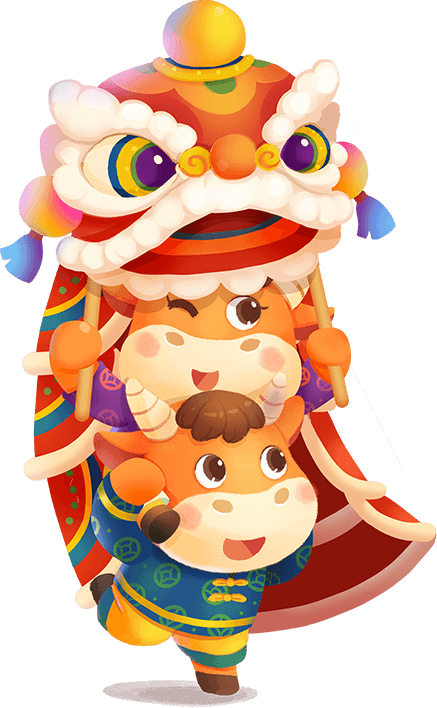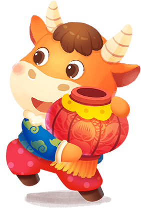 哞哞说哈喽,新年好彩头,与穿着牛年卡通服的演员互动,有机 会通过互动小游戏得到小红包(糖果)哦。