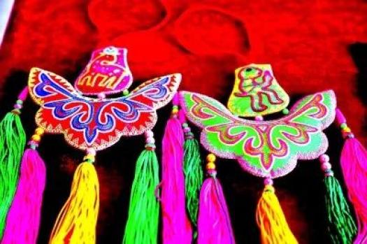 青海省海东市互助土族自治县是全国唯一的土族自治县,被称为“彩虹的故乡”。在这里,人们的衣领、衣胸、辫筒、鞋袜、枕巾、荷包、烟袋上到处是太阳花、万字纹、回型纹等纹样,这些最寻常的装饰因为土族盘绣成了精美的工艺品。
