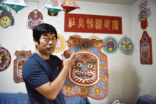 侯志新是侯氏社火脸谱的第六代传承人
