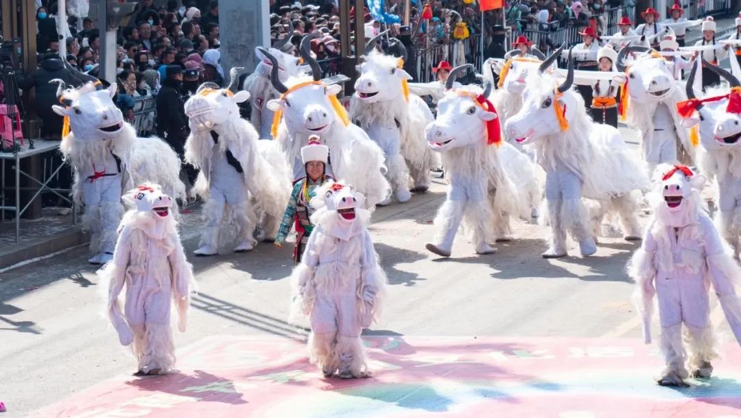 精彩纷呈的社火表演接连上演,各社火队铆足了劲,竞相斗艳。威远镇的高抬巡游,七八岁的儿童身着戏服,手持道具,或悬于高空,或立于方寸之间,极具观赏性;东沟乡的土族儿女跳起欢快的安昭舞,尽情释放热情;加定镇将牦牛舞与藏族舞蹈有机融合,以欢快、热烈、豪放的动作,展现人与自然万物和谐相处的精神风貌;东和乡通过“种皇田”,展现互助土乡喜获丰收的盛世景象……