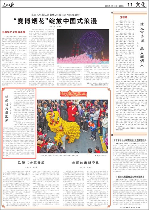 “快看!”人群中发出一声惊叹,所有人的目光齐刷刷地望去,一个个小演员稳稳当当地站在支架上,被高高托举至半空,衣袂飘飘,引得阵阵喝彩。接着,又有社火演员登台,通过演绎惩恶扬善的故事,将现场气氛推向高潮,鼓点声愈发急促,玄衣武将挥动长鞭,红裙仙子撒下花瓣,整条街化为流动的戏台。