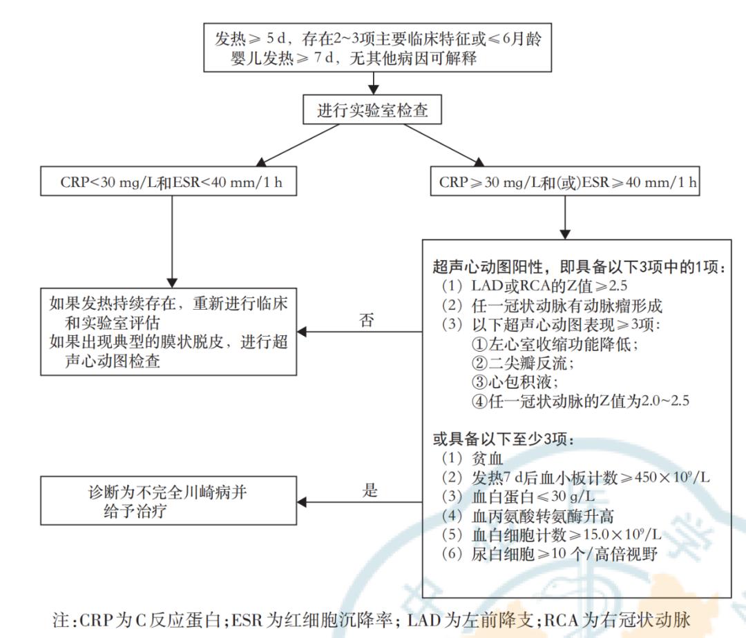2.IKD:发热≥5d,但主要临床特征不足4项的患儿按图7流程评估是否为IKD。