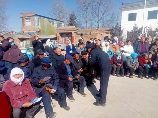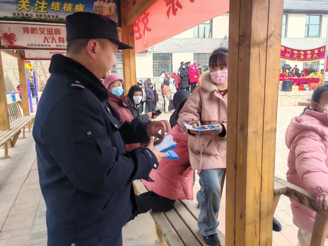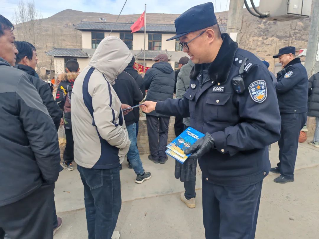 “外出走亲访友或看社火时一定要锁好门、关好窗,做好防盗工作。”为有效预防春节期间因看“社火”或走亲访友家里无人看守或村庄内人员较少易引发盗窃案件的实际,东和派出所民辅警借力社火现场,向在场的广大群众积极宣传家庭防盗、车辆防盗、财物防盗等法律知识,并提醒广大群众出门与亲朋好友聚会或者看社火时一定要锁好门窗,做好邻里守望,努力营造宣传一个带动一片的浓厚氛围。
