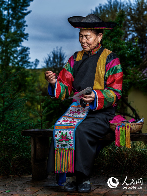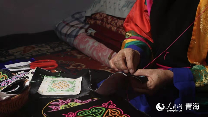 土族盘绣代表性传承人李发秀。人民网 雷阳摄