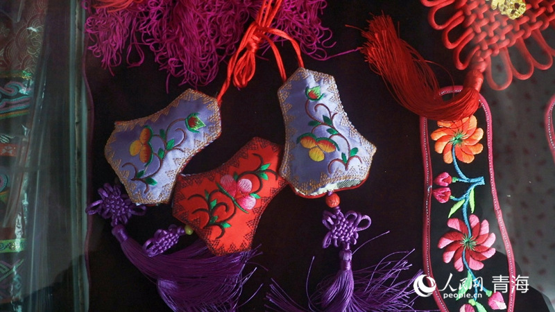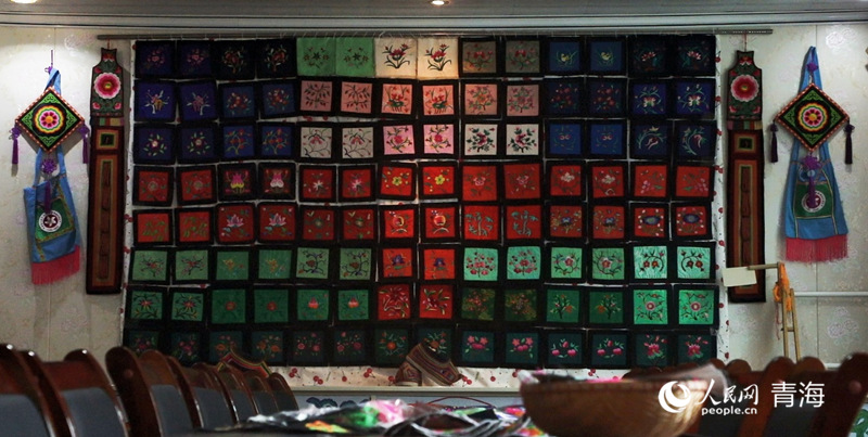 今年6月,李发秀经营的青海发秀手工艺品开发有限公司被认定为“青绣”扶贫就业工坊,20余名绣娘在这里找到了工作。像这样的扶贫就业工坊,互助县还有很多。互助文化馆绣文化办公室支持成立的金盘绣公司对扶贫就业工坊进行网格化管理,统一发放订单,统一回收绣品,再发往各个销售点进行售卖,以此增加绣娘们的收入。