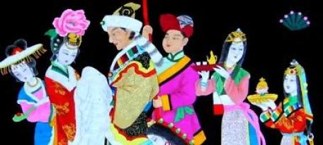 湟中堆绣作品《唐蕃古道》描绘的是文成公主进藏时在青海日月山脚下的迎娶盛况。作品采用湟中堆绣中的平面堆绣也叫“平堆”,把剪好的绸缎块平贴拼合在刺绣的布料上,然后稍加渲染,产生立体效果,画面平展匀净、色彩艳丽、工艺精湛。