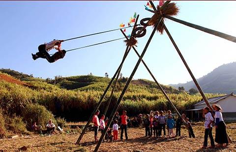 正月十六,秋千的主人爬到树上,把秋千卸下来,一年一度的打秋千就结束了。 (据南方财富网微信号)