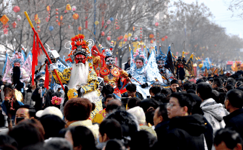 2024年正月期间,陕西省宝鸡市陇县进行的各类社火巡演。新华社记者 刘潇 摄