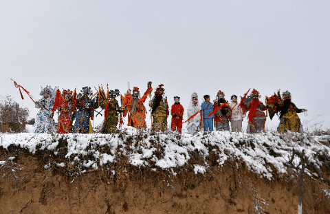 2月23日,陕西省宝鸡市陇县东南镇黄花峪村在进行社火游演。新华社记者 刘潇 摄
