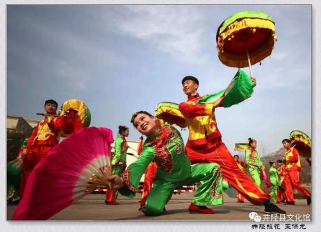 井陉拉花属北方秧歌,起源于明清,产生并流传于井陉县境内,以东南正、庄旺、南固底为代表。2006年列入国家级非物质文化遗产代表性项目名录。井陉县通过健全组织机构,完善艺术档案;实施“非遗进校园”,抓好娃娃传承;开展宣传推广,扩大全民共享等方式做好非遗保护传承。