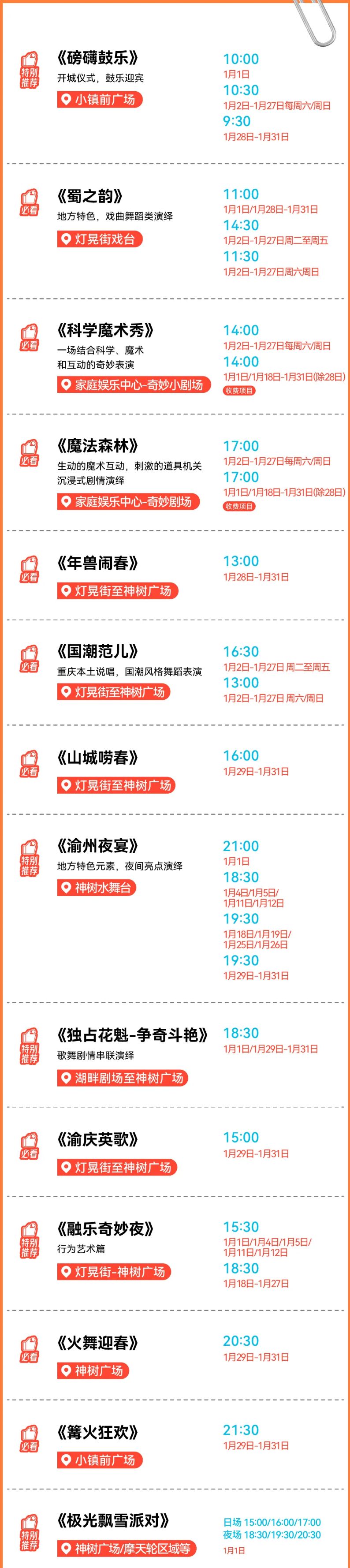 2025重庆融创渝乐小镇春节表演时间表