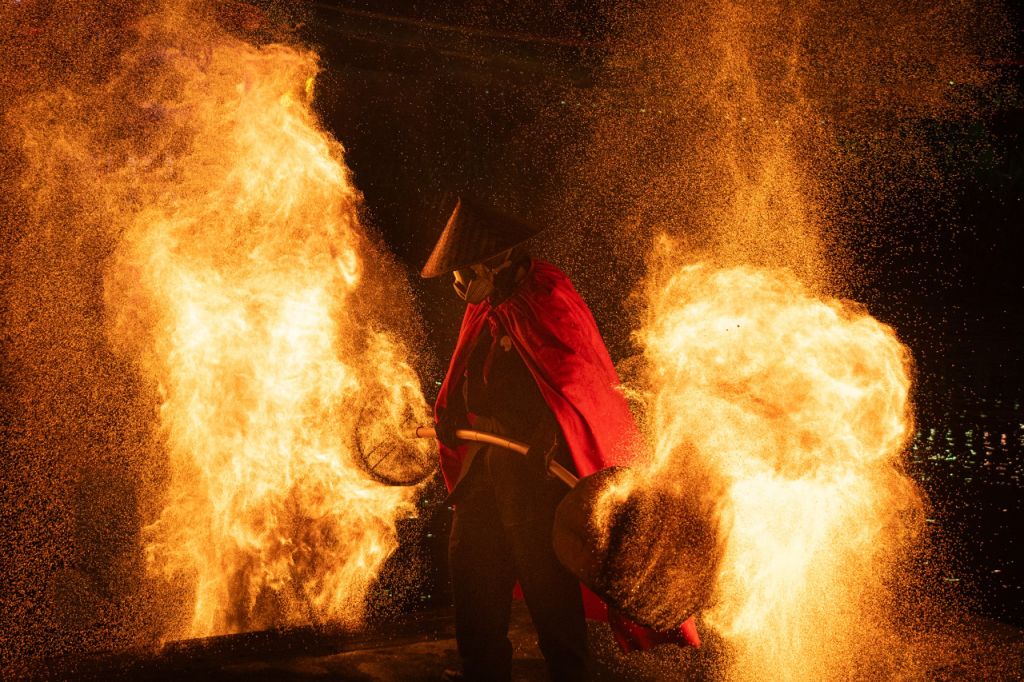 火裙、火刀、火扇、飞火流星锤、火魔方、火柱、火棍、打铁花、双人火壶...九大火舞耀春映八方,点燃小镇新春,盛世辉煌,陪你红火一整年。
