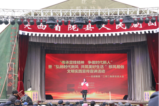 近日,陇县新春购物节暨第43届二月二物资交流大会盛大开幕。为了让移风易俗理念深入人心,充分彰显新时代的新风貌,3月5日,陇县借助新春购物节的契机,开展了“传承雷锋精神 争做时代新人”暨“弘扬时代新风 共筑美好生活”移风易俗文明实践宣传宣讲活动,将移风易俗理念融入群众喜闻乐见的文艺形式之中,为群众呈上了一场文明新风的盛宴。