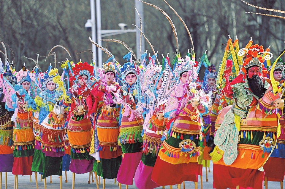 2月12日,晋中市在市城区举行社火会演。 张浩亮摄
