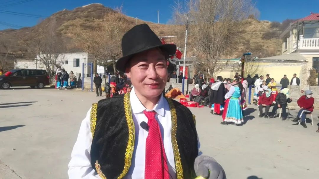 广场上,社火队员们排练得卖力,67岁的代全梅和村里的老人们搬着小板凳坐在一旁看得开心。她告诉记者:“村里四年没演社火了,今年把社火耍起来了,我们老了跳不动社火了,我们就来看看,社火耍的好,我们的日子也是越过越好。”