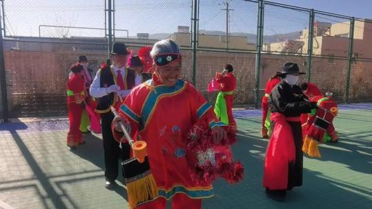这不,湟中区土门关乡土门关村的社火扭起来了。