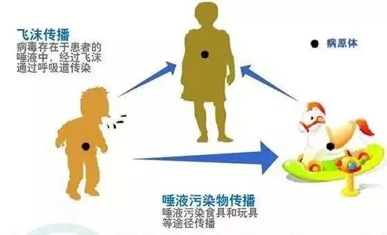 极少部分可能通过接触传播,学校里孩子相互玩耍,共用物品多,接触机会多,儿童之间亲密的接触亦可能传染。