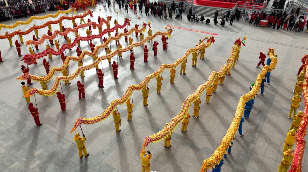 鼓声铿锵、彩扇飞舞、热闹非凡
