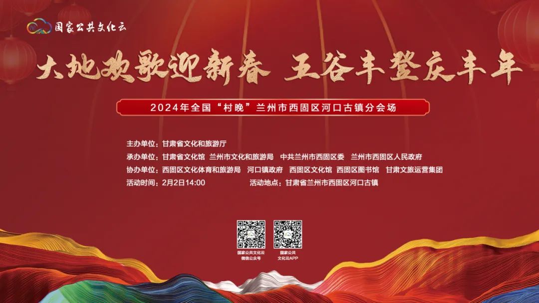 由甘肃省文化和旅游厅主办,甘肃省文化馆、兰州市文化和旅游局、中共兰州市西固区委承办,西固区文化体育和旅游局、河口镇政府、西固区文化馆、西固区图书馆、甘肃文旅运营集团协办的“大地欢歌迎新春 五谷丰登庆丰年”2024年全国“村晚”兰州市西固区河口古镇分会场将于2月2日14时在河口古镇举办。