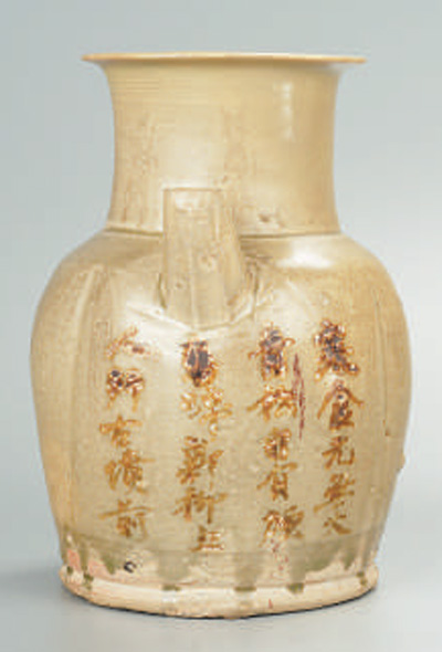 长沙博物馆藏写有寒食诗文的唐代长沙窑瓷壶。