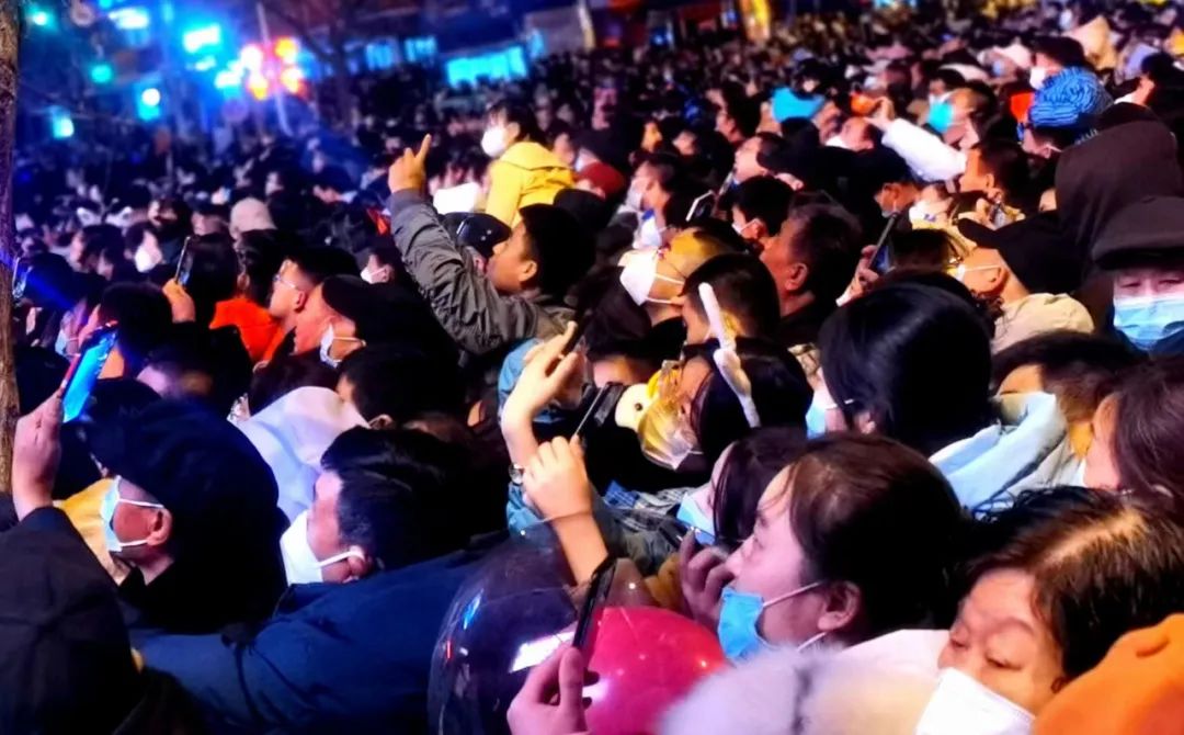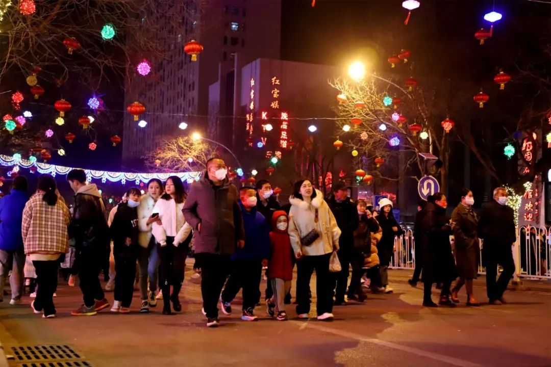 晚上7时30分,随着一声声惊雷巨响,人民广场上空被绚丽的焰火点亮,有的像鲜花盛开,有的如细柳低垂,形色各异,美轮美奂。街道花灯流光溢彩,挤满了四面八方前来观看的市民群众,大家仰着头,拿着手机拍摄,还不时被壮观的烟花震撼发出惊呼,纷纷沉浸在喜庆的节日氛围中。半个小时焰火表演,为广大群众带来了久违的节日盛宴。