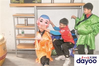 如今,武馆大概有80名学员,不过李氏兄弟不会向他们都传授大头佛技艺。“学大头佛,必须要有兴趣、不害羞、不怕痛,不然教了也是白教。”李应伦说,今年15岁的陈俊轩就是“不怕痛”的学员。当了4年“大头佛”,俊轩已经去省内多地演出。他喜欢大头佛的轻松、搞笑,能把快乐传递给别人。