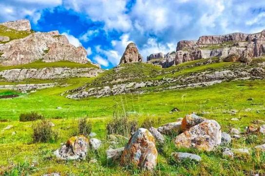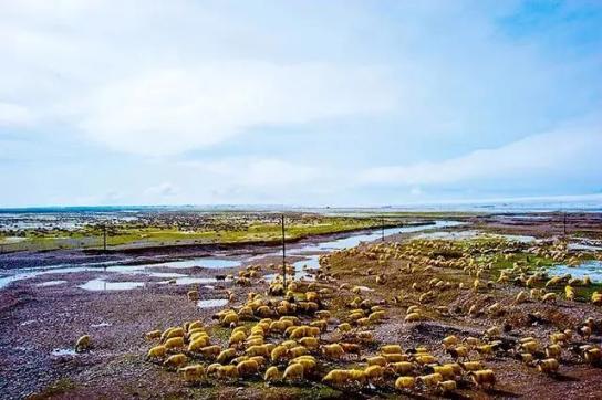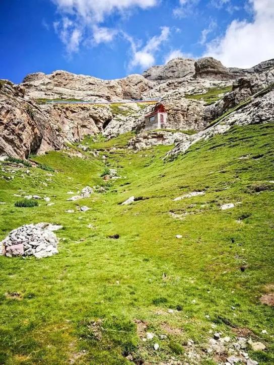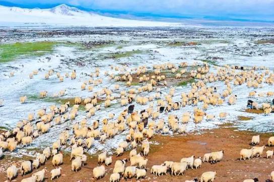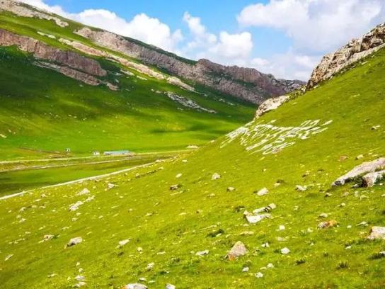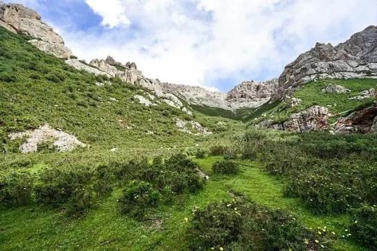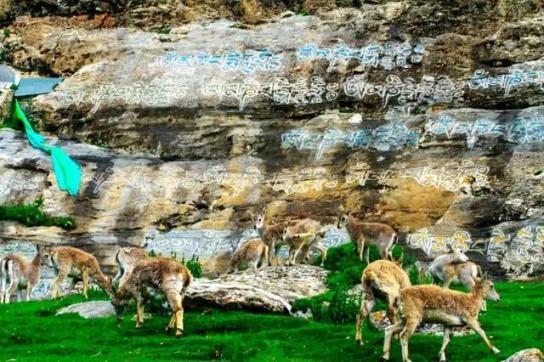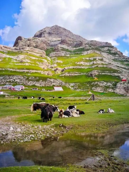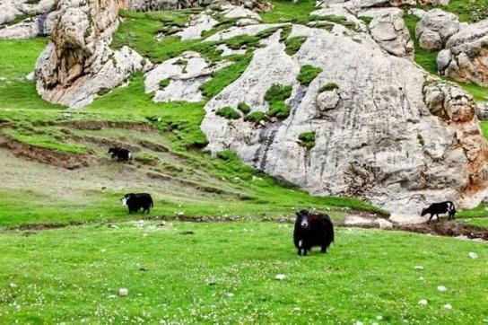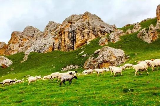 夏季山坡上绿草茵茵,岩羊成群,是回归自然的世外桃源。