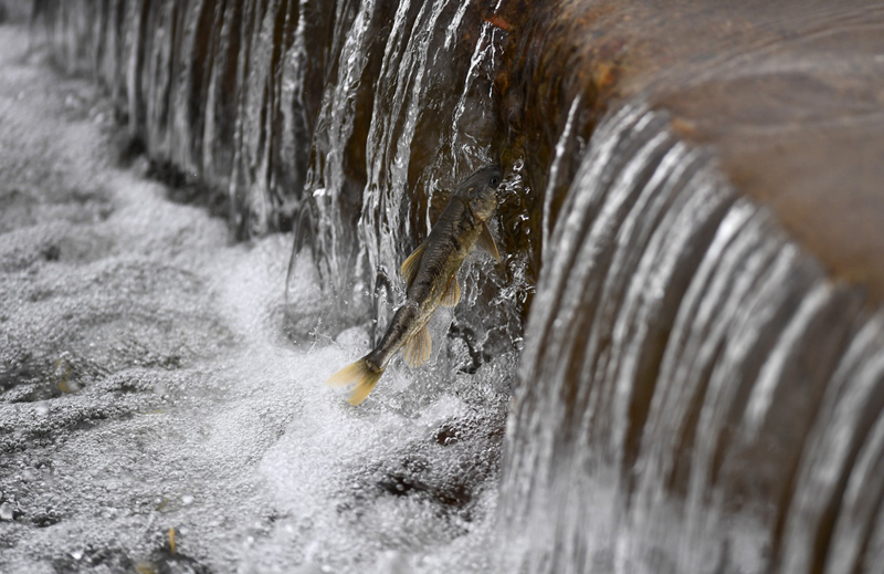 在青海省海北藏族自治州刚察县,一条湟鱼在沙柳河中洄游(7月6日摄)。新华社记者 张宏祥 摄