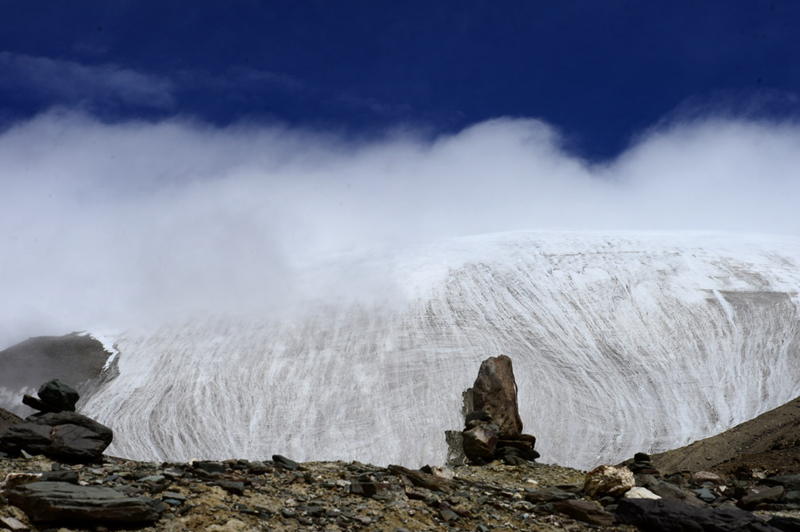 这是在青海省海西蒙古族藏族自治州格尔木市境内拍摄的昆仑山玉珠峰冰川一角(2017年8月19日摄)。新华社记者 张宏祥 摄
