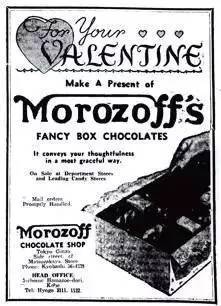 20世纪30年代,一家名为Morozoff(莫洛佐夫)的日本糖果公司面向身在日本的欧美人士策划了一则广告——目的相当单纯,就是为了推销自家的产品——第一次把情人节和巧克力扯在了一起。在当时,这个广告并没与起到很好的传播效果,但日后却产生了巨大的影响——现在东亚各国在情人节送巧克力、以及在3月14日的白色情人节回赠巧克力的习俗,都是这则广告效果的延续。