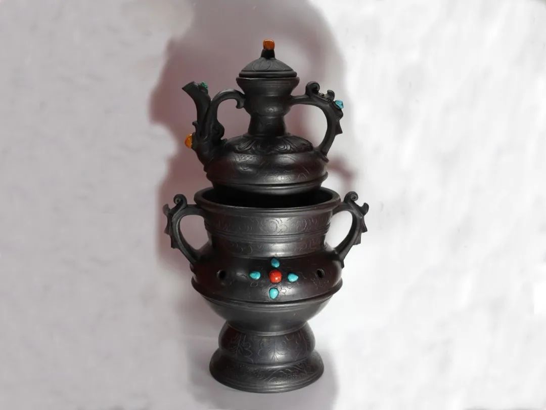 藏族的文化艺术自古就是在吸收犍陀罗文化、突厥文化、尼泊尔古代艺术等多元文化的基础上形成的。囊谦黑陶的造型同样也是在吸收异域器物造型的基础上,逐渐丰富并完善的,因此,在囊谦黑陶造型中保留着许多异域艺术文化因素的影子,这是囊谦黑陶造型的重要特征之一。