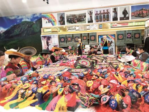 “每家每户都这么沟通也不是长久之事,我就想有没有更好的方式,把产业发展下去。”等大家开始愿意做事情,她便开始寻找更智慧的可持续之路。“我在每个镇、村几乎都建了一个基地和扶贫车间。”2015年,苏晓莉成立了“素隆姑”。“我的模式就是‘企业+基地+农户+能人+市场’。这个能人就是我在各村找的带头人,他们手艺好,又有组织能力。”