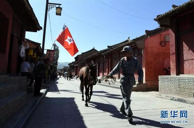 ▲8月16日,一名身穿红军服的少年牵马走在哈达铺镇红军街上。当地群众经常为游客表演再现红军经过哈达铺场景的节目。新华社记者 马宁 摄