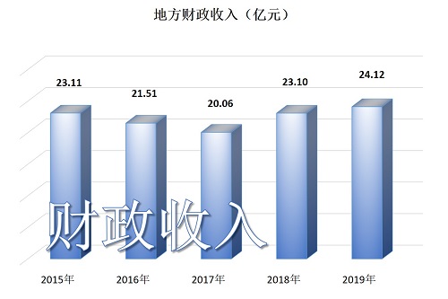 2019年全市地方一般公共预算收入24.12亿元,其中税收收入18.38亿元;地方一般公共预算支出123.59亿元,其中一般公共服务支出14.76亿元,教育支出20.14亿元,文化体育与传媒支出4.80亿元,医疗卫生与计划生育支出8.03亿元,节能环保支出4.31亿元,城乡社区事务支出12.04亿元,社会保障和就业支出14.50亿元,住房保障支出6.76亿元。