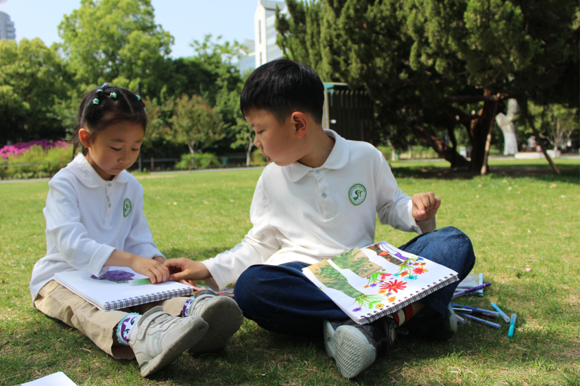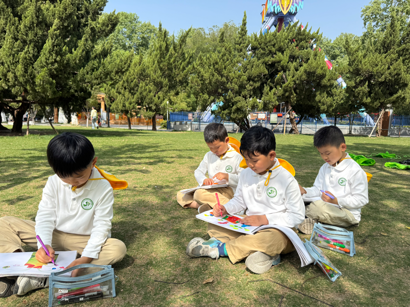 我想要把逍遥津的春天带回家呢!孩子们手持镂空板,像小小的探险家一样,在公园里捕捉春天的颜色。有的为蝴蝶找到了春天的翅膀;有的为小雨伞穿上鲜嫩的小草衣服;有的用相机定格春色......接着,孩子们运用废旧材料,利用本身的图案进行拼贴组合成一幅新奇有趣的作品,有的在拼贴的基础上再进行二次的创作,让作品融合拼贴和手绘带来的双重美感。瞧,宝贝们蹲在五彩斑斓的花丛边,好奇地观察着绽放的花朵。他们用稚嫩的双眼发现春天的美,感受着微风的轻抚,将逍遥津春日的美好一一珍藏。
