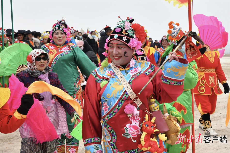 新甘肃客户端2月1日讯(新甘肃·每日甘肃网记者王梓懿 万及敏 实习生黄政栋 姚智超)太平鼓敲起来,旱船划起来……兰州市榆中县的兴隆山脚下,伴随着锣鼓铿锵有力的节奏,社火演员们踏着喜庆的鼓点,舞狮、划旱船、扭秧歌等传统社火节目轮番上演,齐迎甲辰龙年。
