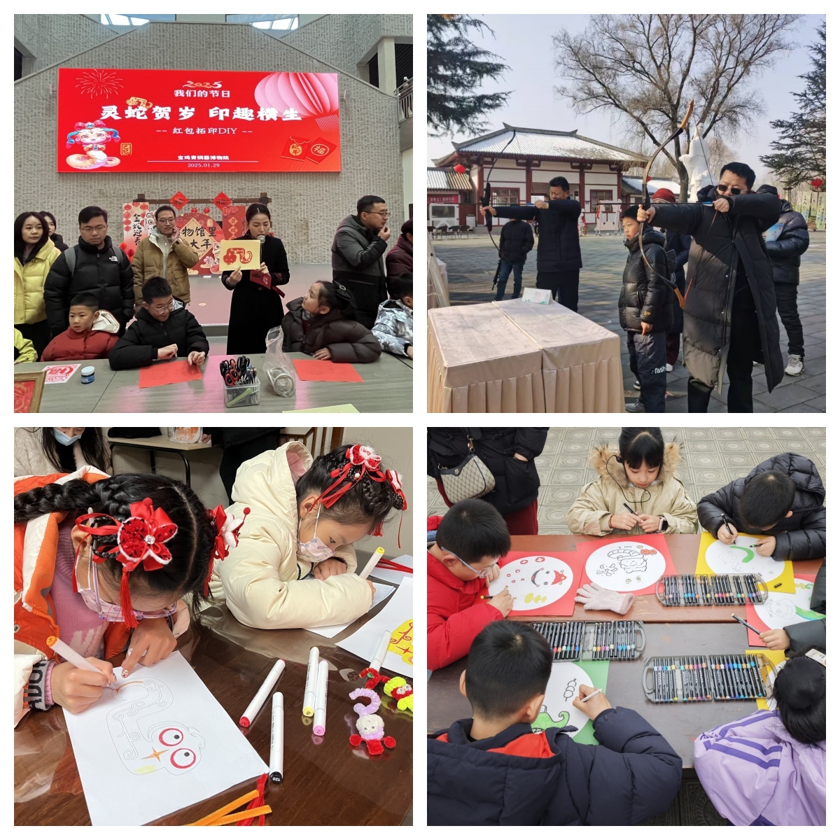 社教活动年味浓。全市各博物馆推出社教活动近百场次,让游客特别是青少年将知识学习与社教娱乐相结合,在轻松愉快的氛围中学习历史、文化、艺术等知识,获得更丰富的、深刻的文化体验。宝鸡青铜器博物院开展了“灵蛇贺岁 印趣横生”印章制作、“巧手剪灵蛇 福运绕新春”剪纸活动、“金文里的蛇”探寻蛇在历史文化中的独特印记、“大年初五迎财神·巧手制作财神帽”等精彩的社教活动,青少年们在体验传统技艺的魅力中感受“年文化”。在宝鸡周原博物馆院可以参与心愿墙、好运投壶 、糖画DIY、非遗年画及红包拓印、红包拓印、做冰箱贴、DIY甲骨文、青铜器线图涂色等社教活动,既拓宽了知识边界,又激发了青少年的好奇心和求知欲。法门寺博物馆“金蛇纳福 纸艺添彩”“巳巳如意 创意彩绘”“画蛇添福”和“五谷绘瑞象 福泽满仓廪”社教活动,吸引五百余人次参与。