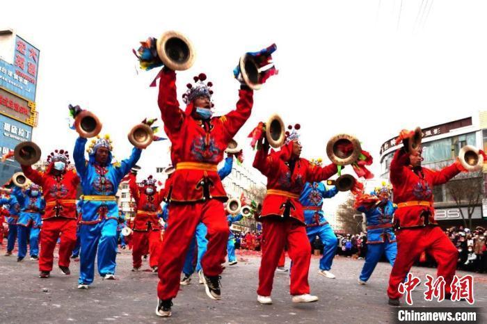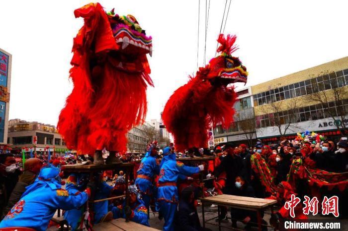图为2023年春节期间,兰州市榆中县甘草店镇三敦营村社火队进行社火表演。(资料图)白婧 摄