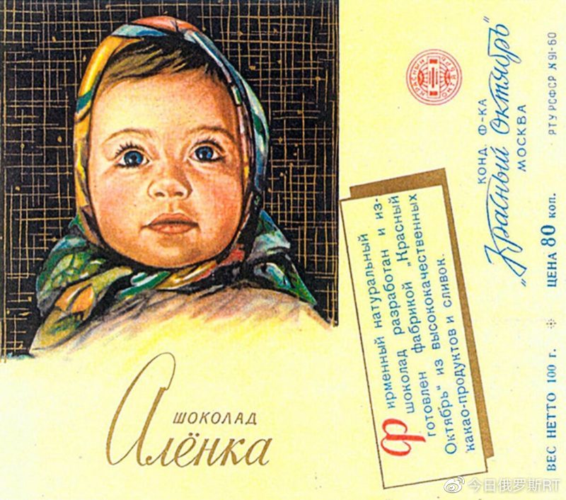 “红色十月”巧克力厂的设计师尼古拉·马斯洛夫以这张照片为基础,设计出了“阿廖卡”的图案,但进行了一些改变:把棕色的眼睛变为蓝色,增加了脸部红晕,嘴唇也变得更加饱满。