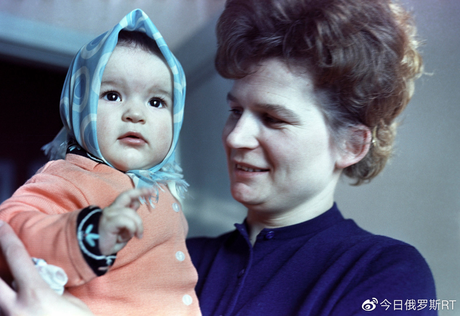 瓦莲京娜•捷列什科娃和她的女儿。丨图片来源:俄新社