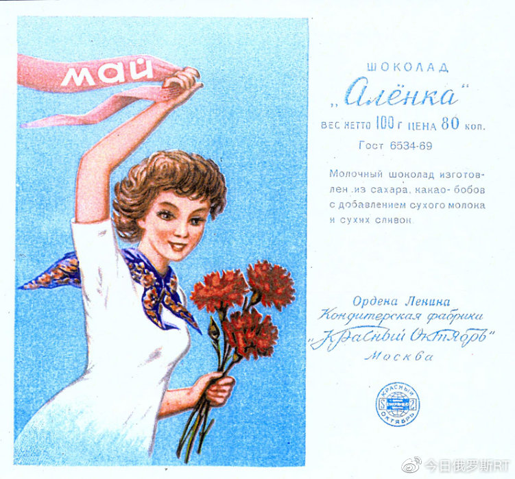 1966年,“红色十月”巧克力厂生产了第一批具有辨识度的包装牛奶巧克力“阿廖卡”。