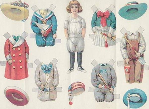 (1910 年更衣男孩纸娃娃,他的搭配有不少都很“女孩”,图自 Diply)