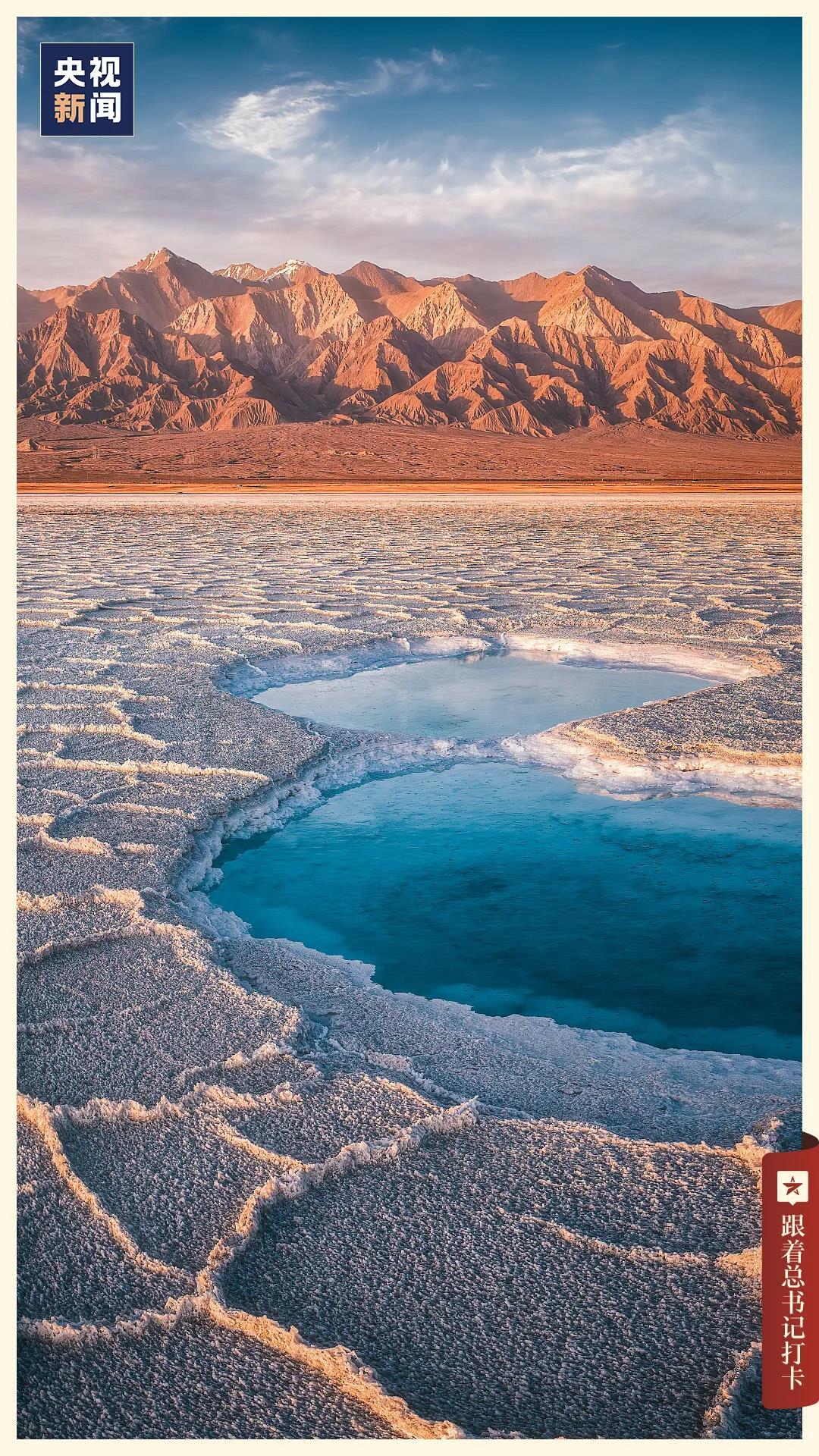 茫崖市有一个形如巨眼的艾肯泉,泉眼如同沸腾的开水,不断翻滚上涌,泉眼周围硫黄矿物质长期沉淀,形成斑斓的红褐色圆圈,从高空俯瞰像极了脉络清晰的眼睛,被称为“大地之眼”。