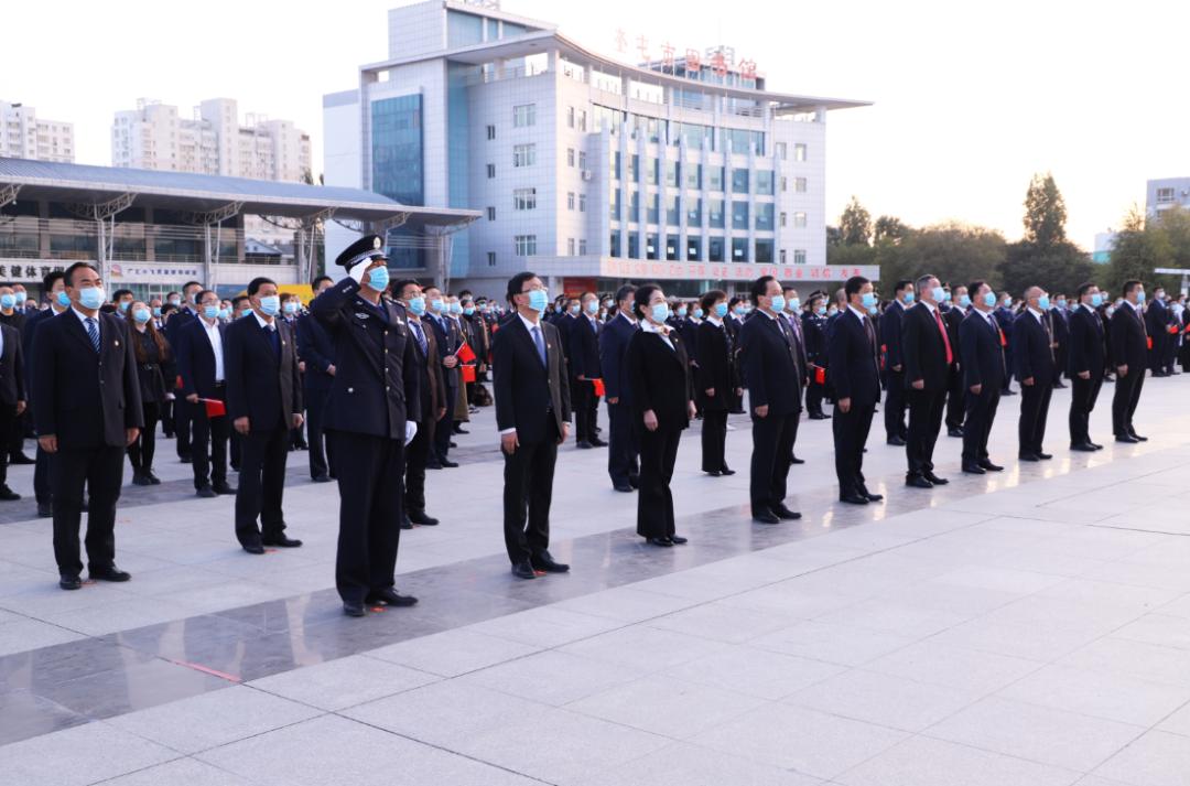 奎屯市委书记贾伊生、自治区高级人民法院伊犁州分院党组副书记、院长奴尔泰·伊纳亚提和程地坤、王振中、田新梅、杨军、杨小成、闫新林、程江、杨浩等市四套班子领导、奎屯—独山子经济技术开发区领导、法检两院领导及全市企事业单位干部职工,街道社区干部代表参加升国旗仪式。