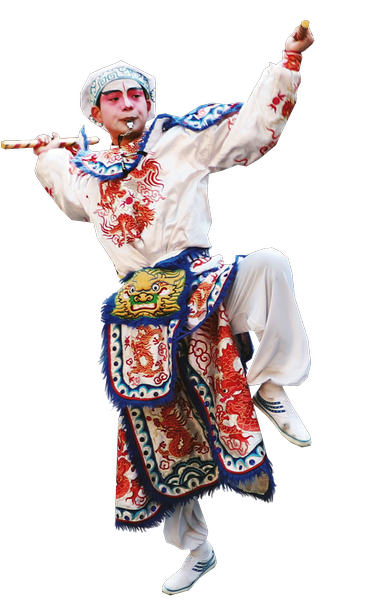 演员们身着华丽服饰,手持英歌棒,随着激昂的锣鼓声翩翩起舞。他们的动作刚劲有力,步伐矫健,时而跳跃,时而旋转,手中的英歌棒在空中画出一道道优美的弧线,与鼓点、锣声相互交织,展现出潮汕人的豪迈与激情。当西府社火遇上潮汕英歌舞,两种不同地域的非遗碰撞出了别样的艺术火花。西府社火的威风锣鼓敲响了春天的号角,平稳高跷踩出了节日的欢腾,36名潮汕英歌舞方阵的演员,将《水浒传》中的英雄形象演绎得淋漓尽致,把现场气氛推向了高潮。