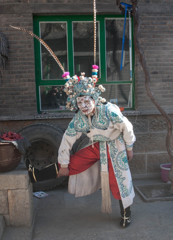 2月11日,在花脸社火中扮演吕布的许中华在表演结束后累得小腿抽筋,不得不停下来调整。